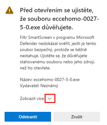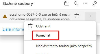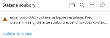- Soubor se stáhne, ale zobrazí se výstražné okno: