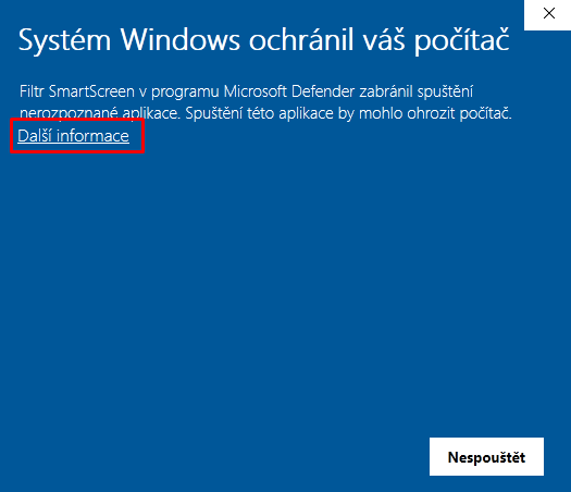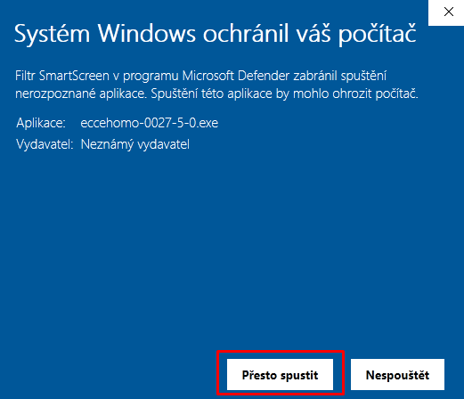 - Nyní se dokončí stahování a spustí se stažený instalační soubor. V tomto okamžiku do toho vstoupí Windows, která zobrazí další varování. Zvolte
